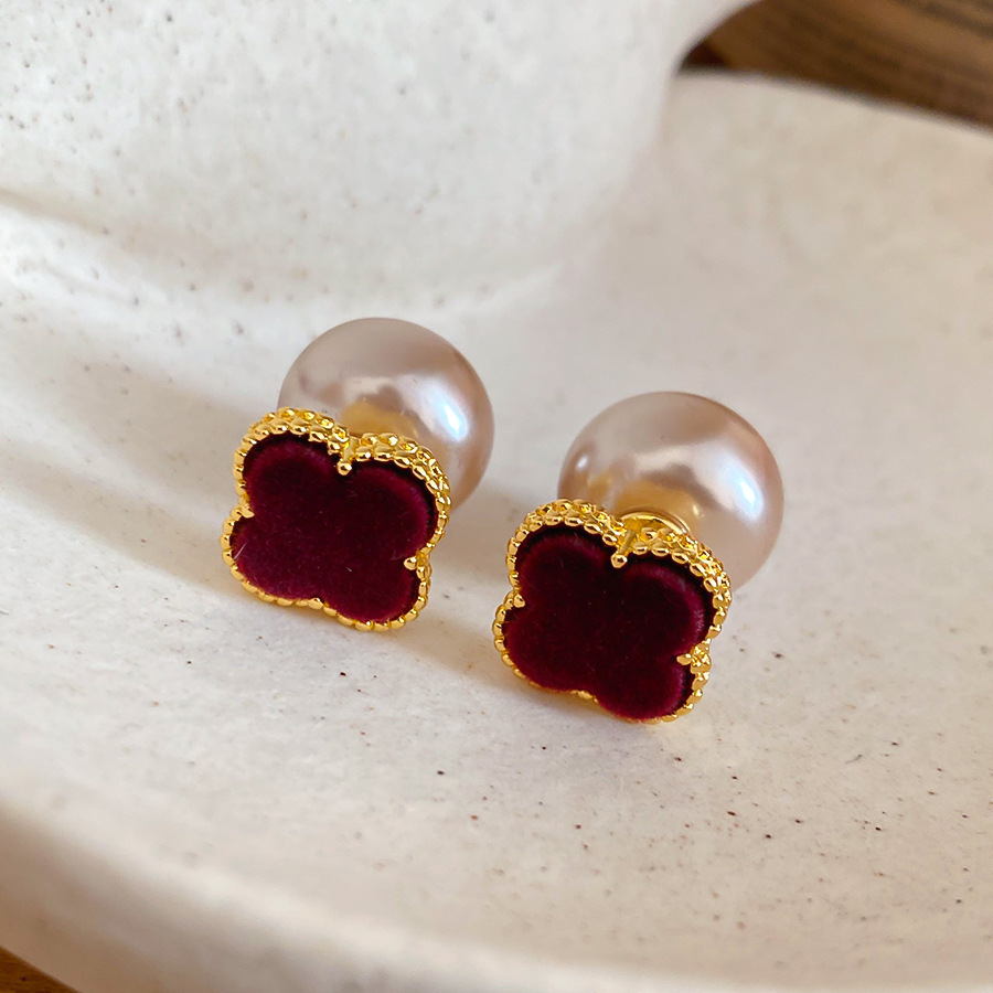 150# earrings-gold-dark red
