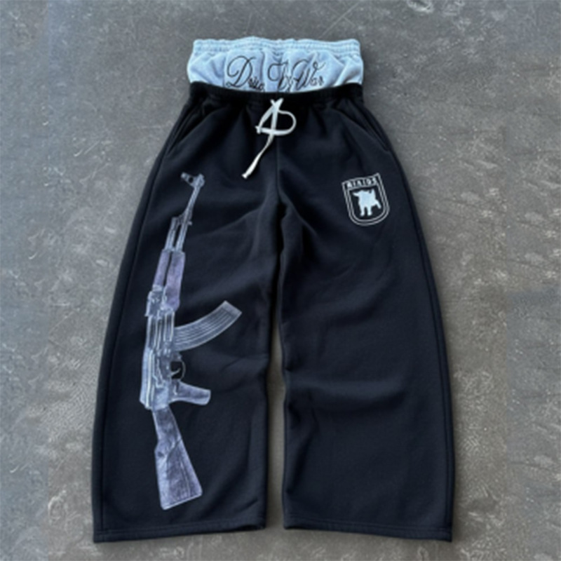 Ak-47 Print Double Waisted Grey Sweatpants
