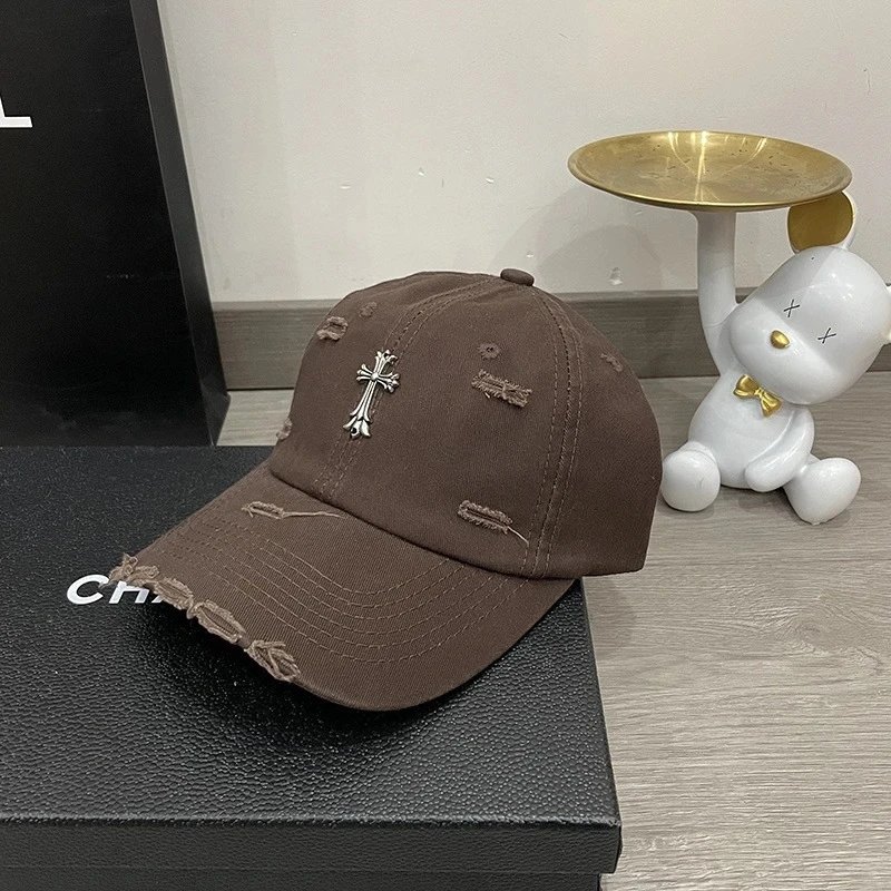Cross hole baseball cap-brown
