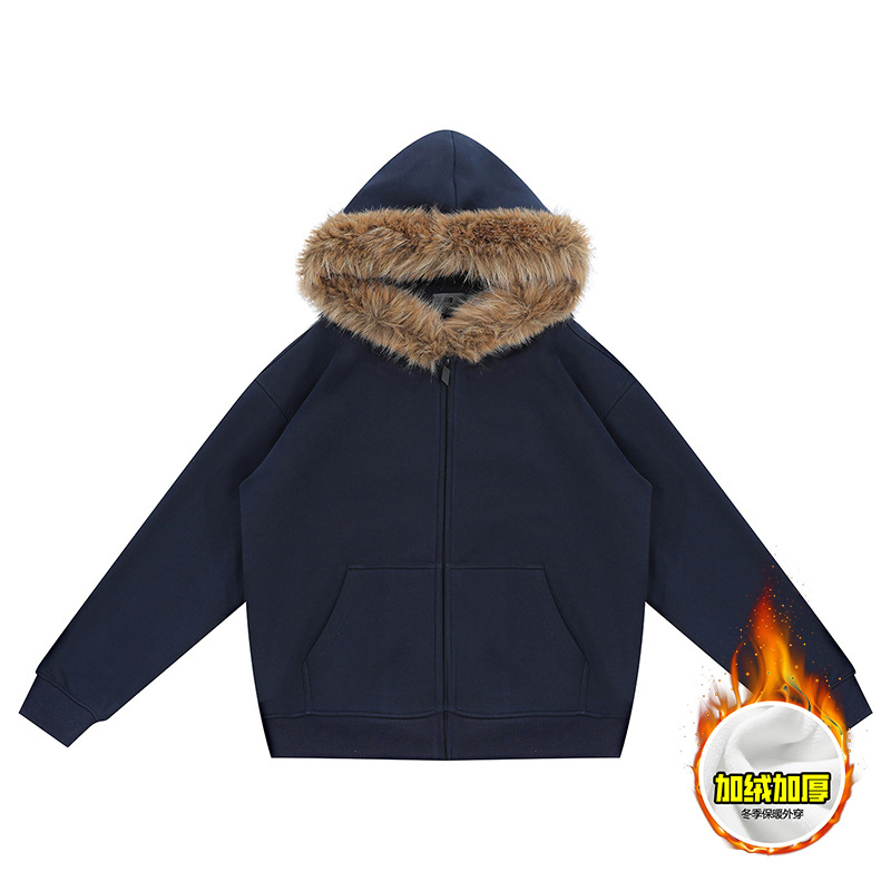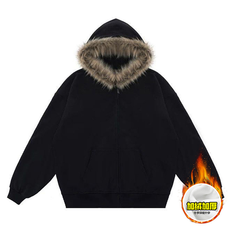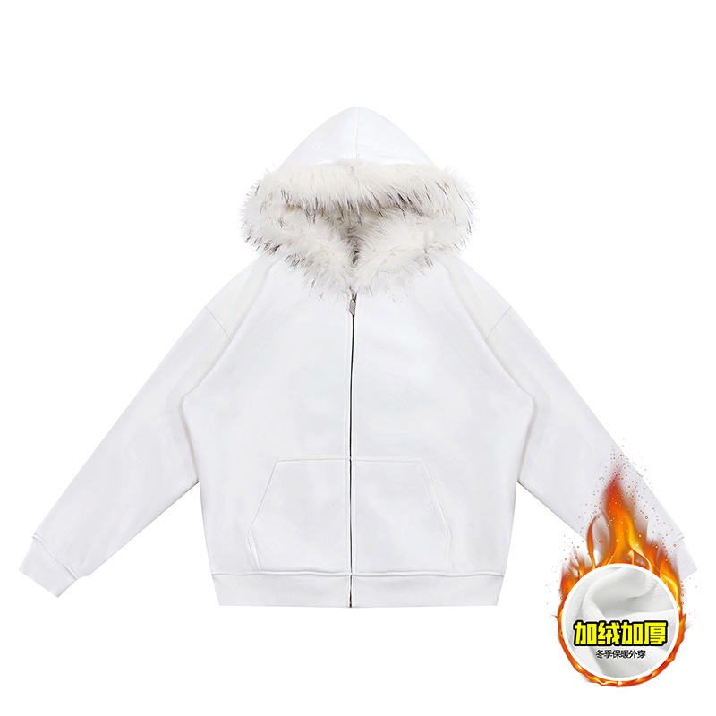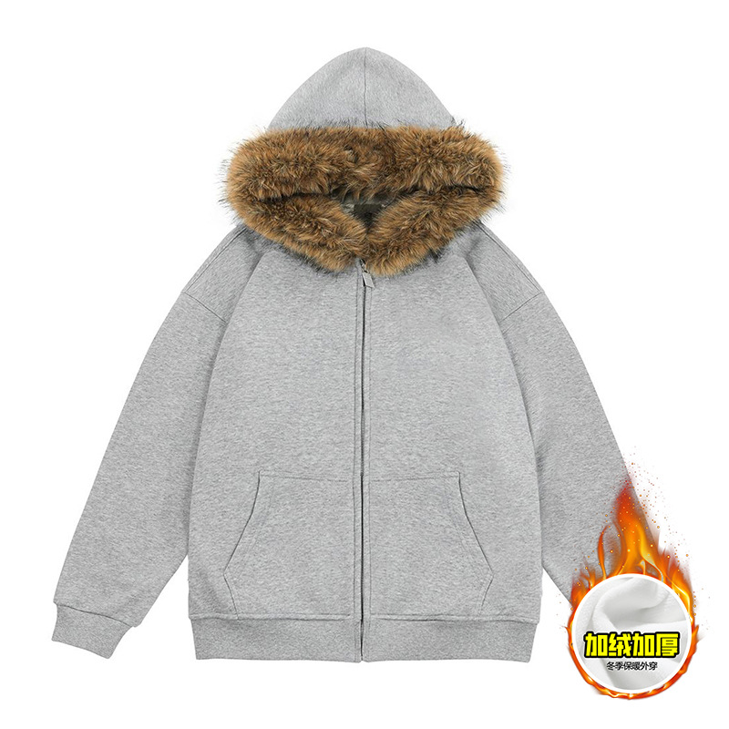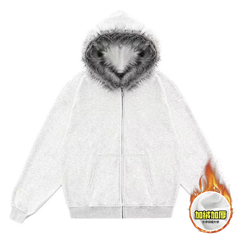 Faux Fur Zip-Up Hoodie Light Grey