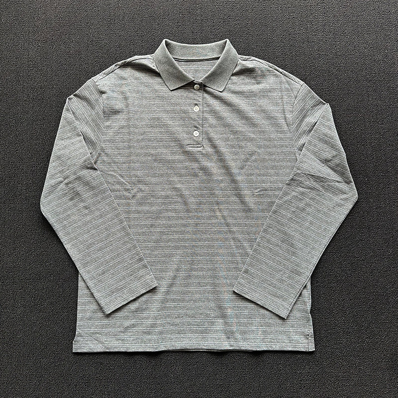 Miu Miu Grey Striped Long Sleeve Polo
