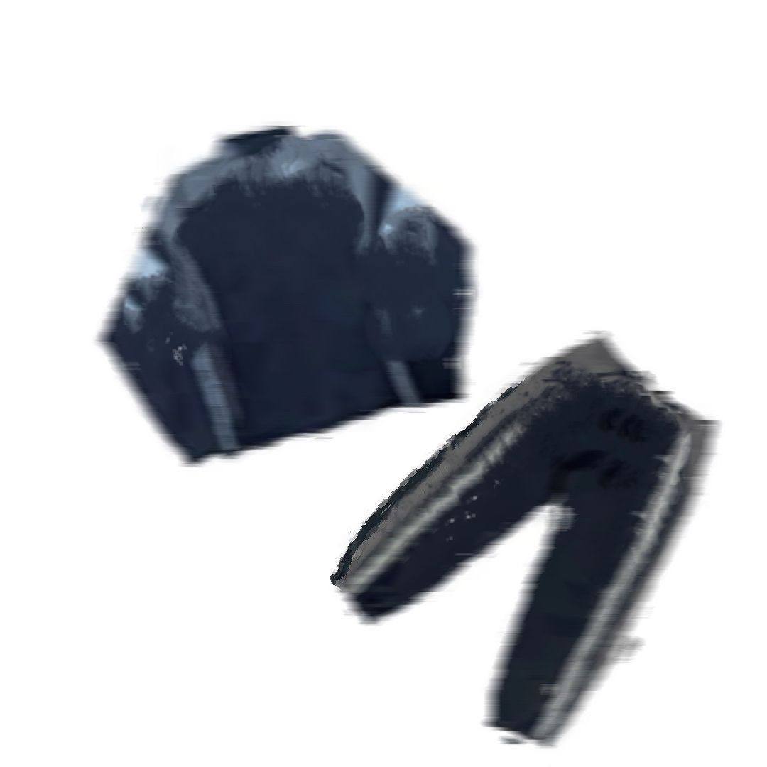 Black and gray top Black and gray pants Black and gray top + trousers
